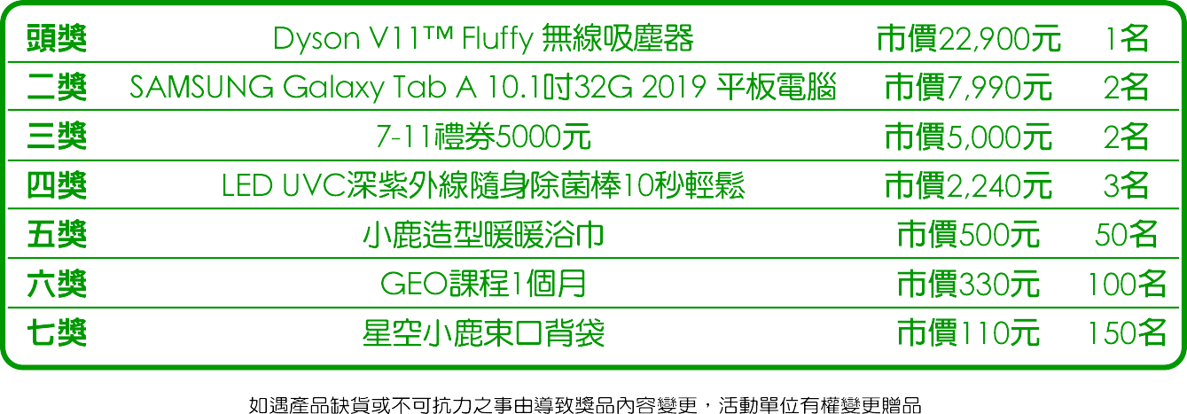 3. 中獎者需提供「長頸鹿美語課程或長頸鹿美語幼兒園的報名收費單據」和「中獎回函」,若上述資料提供不齊全,則視同放棄領獎資格。